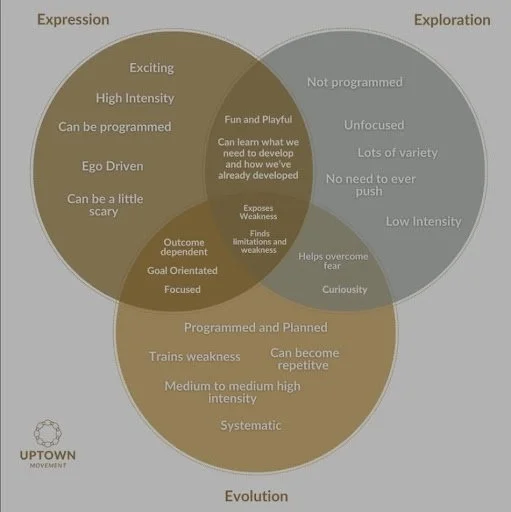 At Uptown Movement, we think of that cycle as three overlapping ideas: Explore, Evolve, and Express.